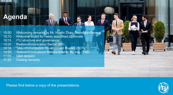 Opened by ITU Deputy Secretary-General Tomas Lamanauskas, this briefing provided a presentation of the welcome toolkit for newly appointed diplomats, an introduction to ITU structure and governance, and an overview of the activities of the three Sectors of the Union.